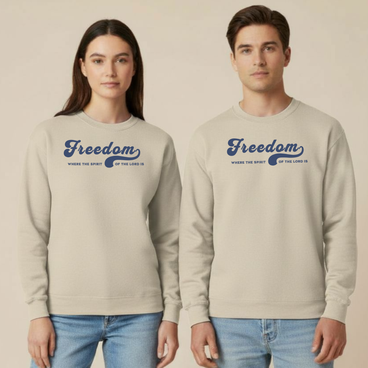 True freedom is found in Christ. This cozy midweight crewneck features the powerful declaration from 2 Corinthians 3:17: “Where the Spirit of the Lord is, there is freedom.”