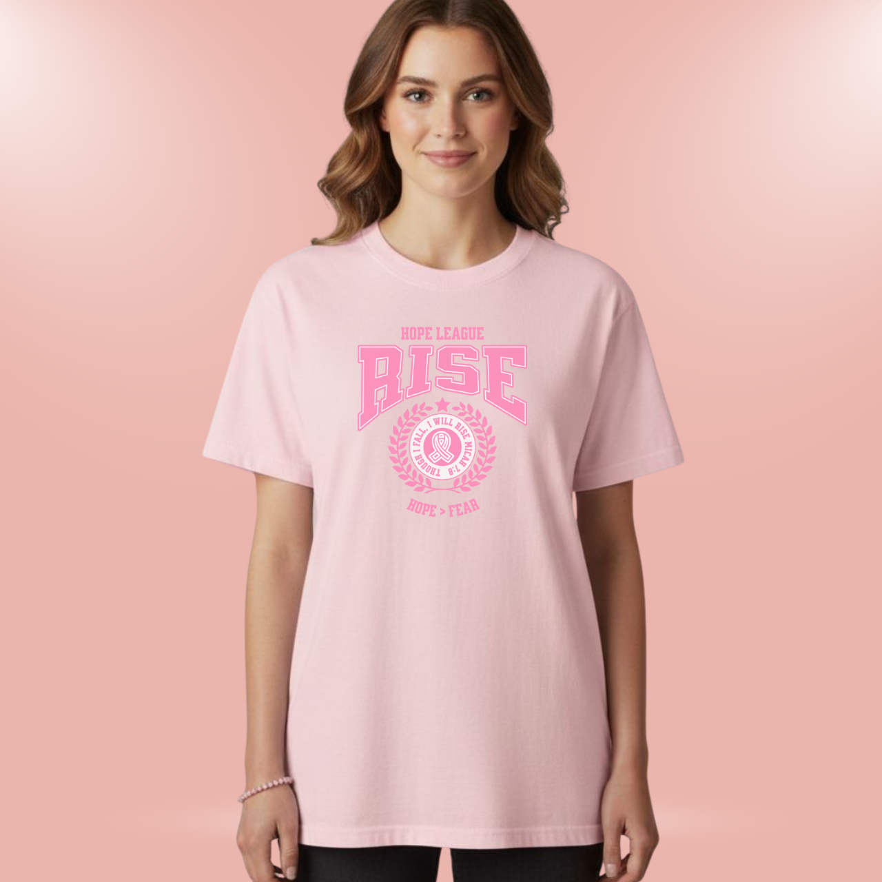 Hope League – Rise Comfort Colors 1717 Christian T-Shirt • Micah 7:8 Bible Verse Tee • Breast Cancer Awareness Faith Shirt for Women