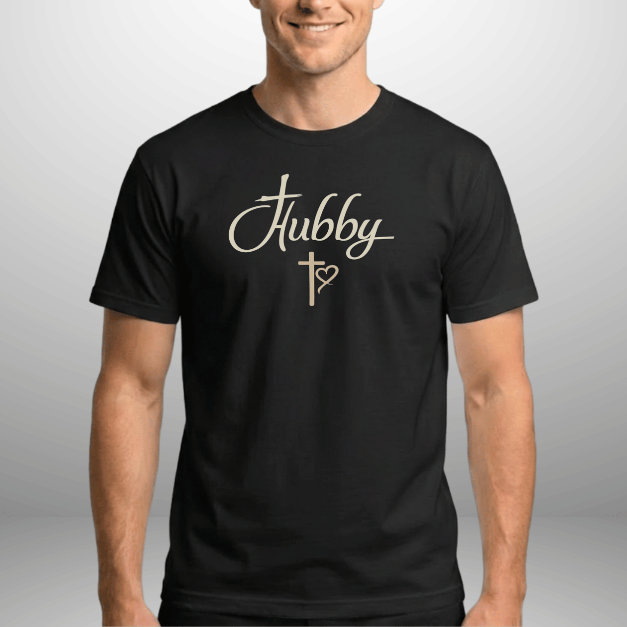 This “Hubby” faith-inspired t-shirt is a meaningful expression of commitment, leadership, and love rooted in Christ. Designed with refined script typography and a subtle cross-and-heart detail, this tee honors the role of a husband and a marriage centered on faith.