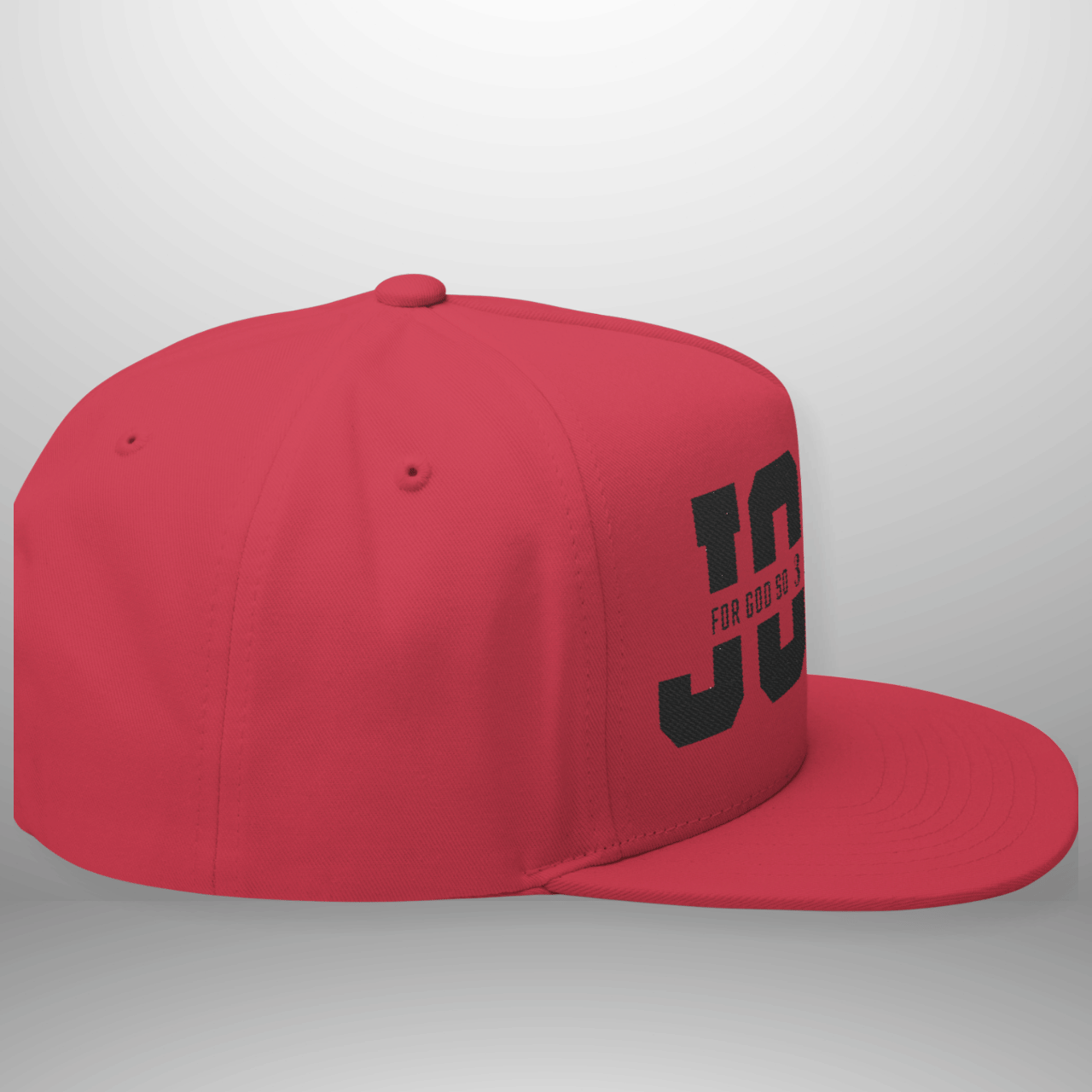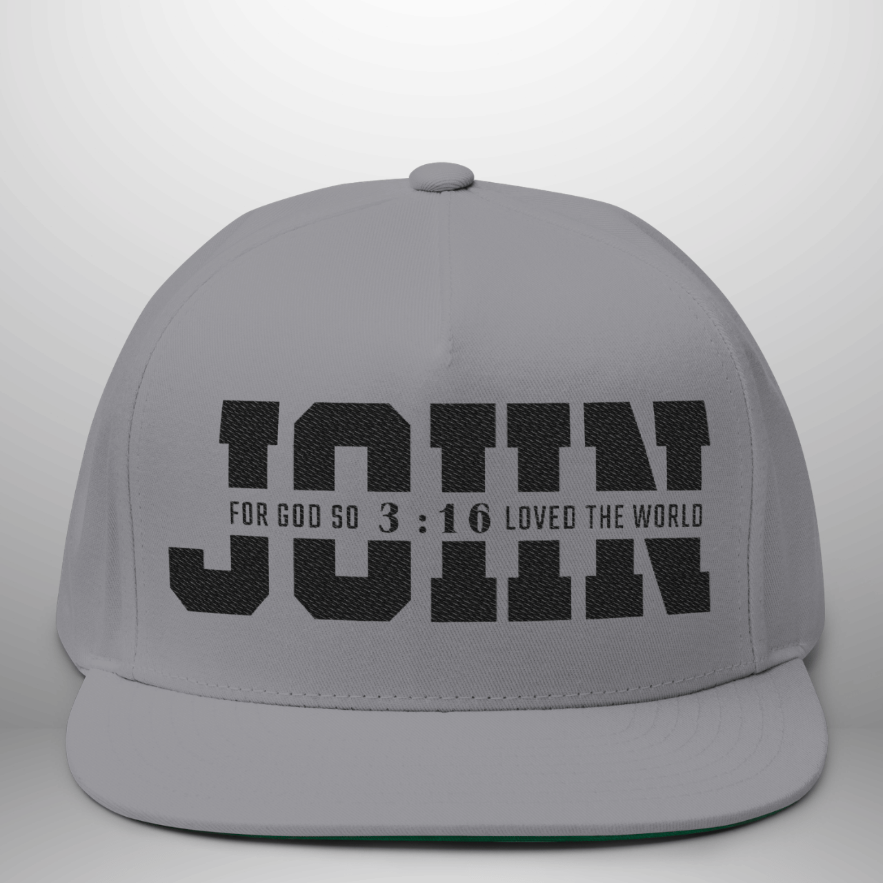 Designed with purpose and clarity, this structured flat bill cap features JOHN boldly embroidered alongside 3:16 — “For God so loved the world.” A faith-forward statement rooted in truth, made to be worn with quiet confidence. Crafted from vintage cotton twill, the high-profile five-panel silhouette keeps the message front and center, while a contrasting green undervisor and matching sewn eyelets add classic, intentional detail. Finished with black embroidery and an adjustable snapback for a secure, comfortable fit—this cap moves effortlessly from everyday streetwear to moments that matter.